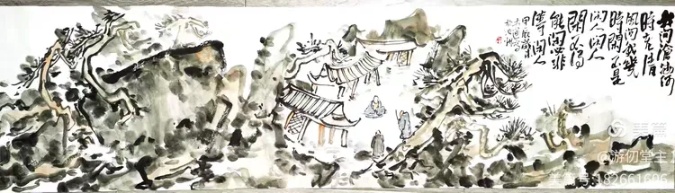 安徽中山画院专家学术委员会委员、中美协会员、中国艺术研究院高研班、清华美院、人民大学艺术学院高研班导师、首都博物馆画院副院长王光明教授,画院副院长、中美协会员、西北大学艺术学院特聘研究生导师、河北工程大学书画研究院副院长、中国画院花鸟画艺委会主任马胜利教授,在笔会现场绘制丈二巨幅作品
